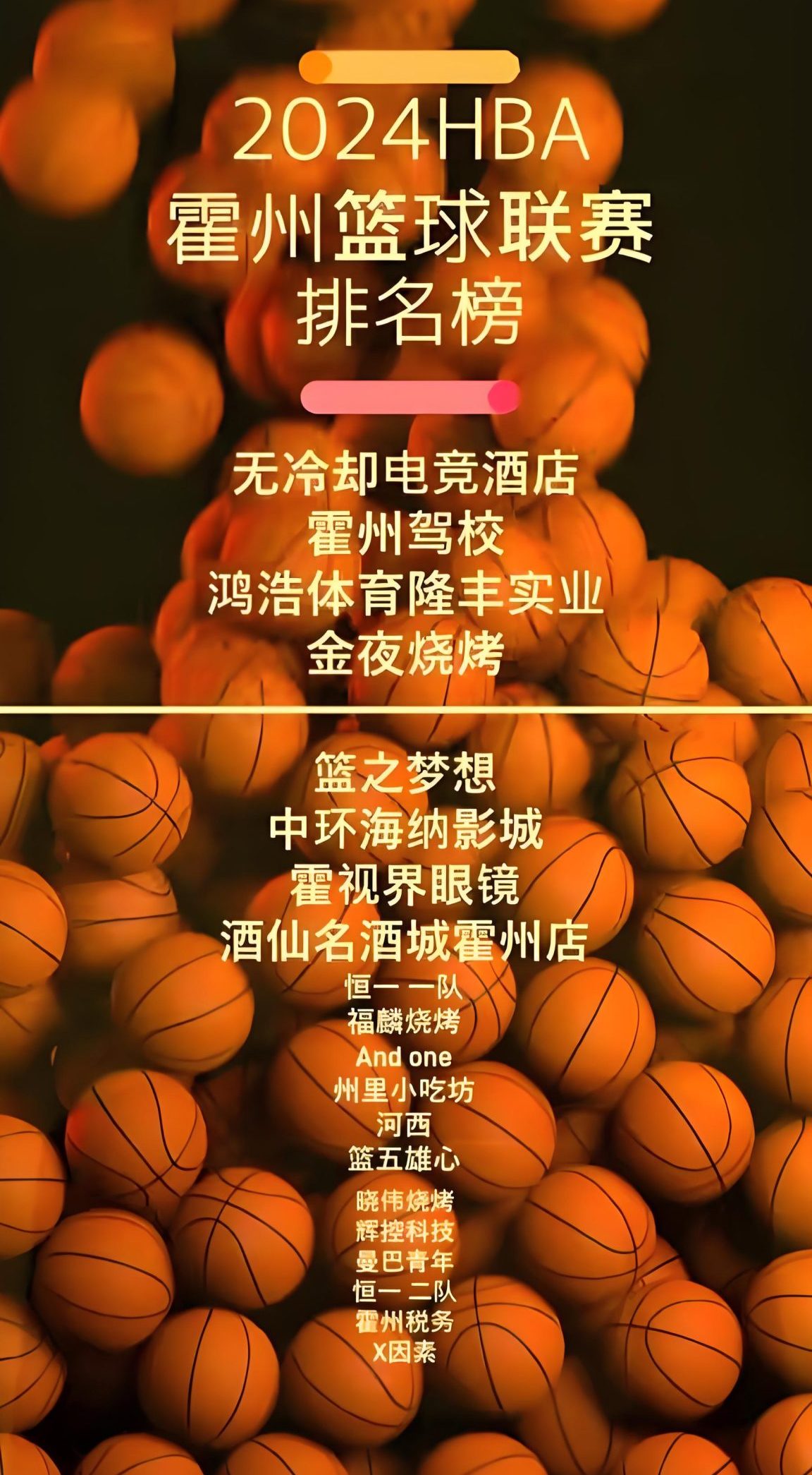2024HBA霍州篮球联赛排名